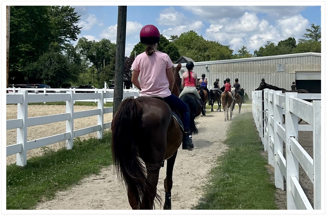 For your first lesson, please wear a pair of long pants and closed-toe shoes. Riding helmets will be provided.